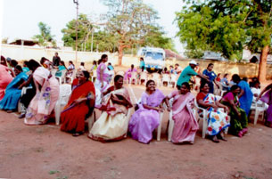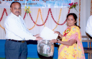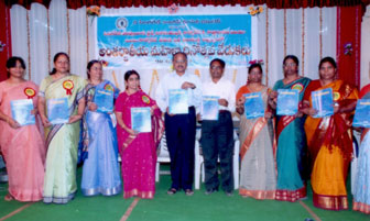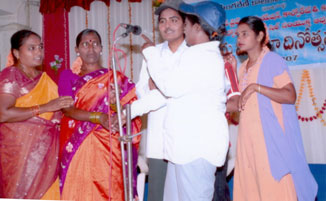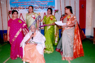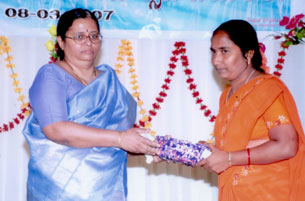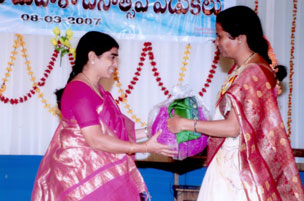 | Smt.Indira Dattatreyulu President, SEWA(left) and Smt.Sridevi Raja Rao(right) felicitating women. |
