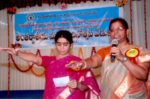 | FETE inauguration by Smt.Indira Dattatreyulu President, Singareni Employee’s Wife’s Association (SEWA)(left) and Smt.Sridevi Raja Rao (Right) |