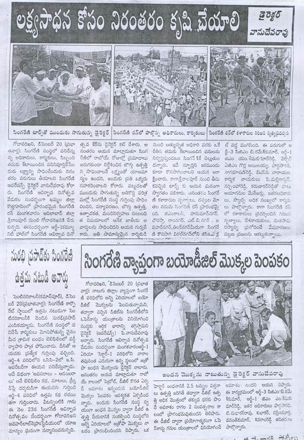 | Shri M.Subramanyam , IAS ., Director (PA &W) inaugurating the Singareni day-2005 celebrations on 22nd December, 2005 at Prakasham Stadium,Kothagudem. Shri K.R.N.Chary, Director(Finanace) and Shri K.Ramakrishna Director( E&M) are also in the picture |