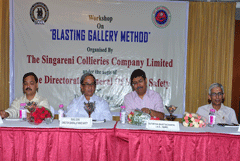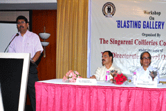 A workshop on “Blasting Gallery Method of Mining Thick Seams ” was organized by SCCL under the aegis of DGMS on 06.06.2013 at Hotel Green Park , Hyderabad. Sri Rahul Guha DGMS has attended the workshop as Chief Guest, Sri S.I.Hussain, Dy.DGMS, SCZ, Hyderabad and Sri Amalendu Sinha, Director,CIMFR,Dhanbad have attended the workshop as guests of Honor.