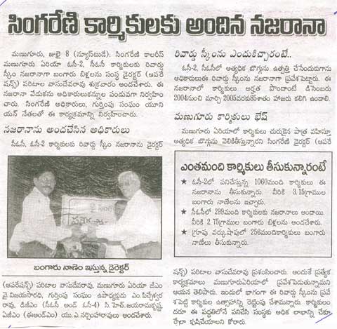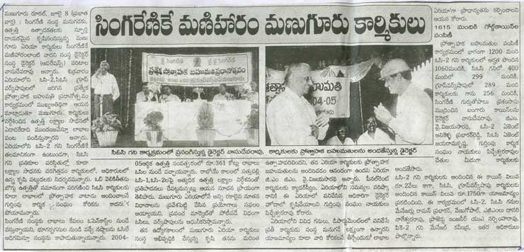 Director(Operations) , SCCL , Shri P.Vasudeva Rao rewarded employees of Manuguru area.. July 8th, 2005