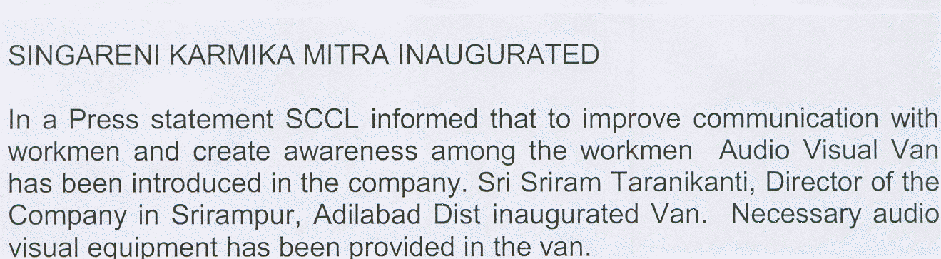 Singareni Karmika Mithra inaugurated...June 22, 2004