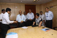 | Sri. S.R. Rao, IAS, Secretary, Department of Commerce, Ministry of Commerce & Industry, Sri. B. Ramesh Kumar, Director (Planning & Projects), SCCL and Sri. K.J.Amarnath, Chief General Manager (HR&BD) witnessed the signing ceremony. |