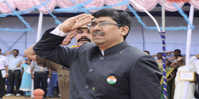 Sri Sutirtha Bhattacharya IAS, C&MD, SCCL at 68th Independence Day Celebrations at Prakasam Stadium, Kothagudem
